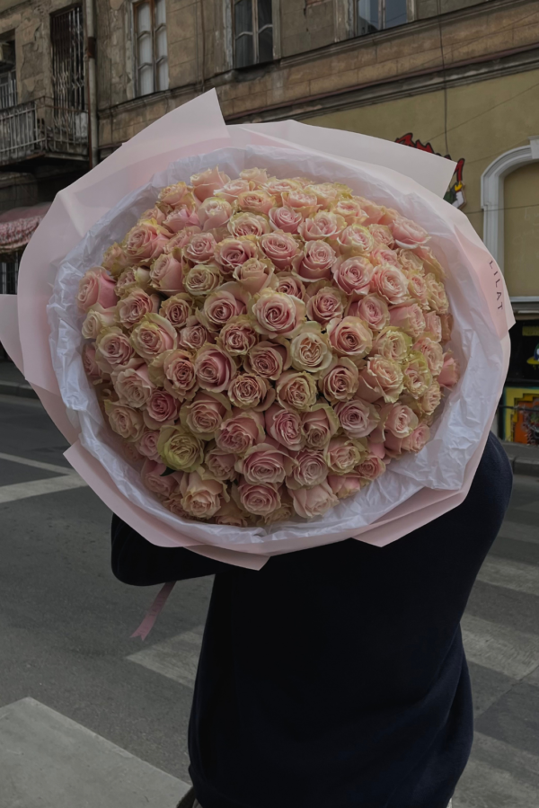 101 роза «Пинк Мондиаль» — это впечатляющая и роскошная композиция из большого количества нежно-розовых роз. Букет создаёт ощущение богатства, красоты и романтики, придавая композиции изысканный и элегантный вид. Идеально подходит для особых событий, романтических подарков или значимых случаев. Собирается из свежих высококачественных роз и сохраняет красоту при правильном уходе.