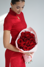 Букет из 15 красных премиум роз создаёт роскошную, элегантную и эффектную композицию. Каждая роза высокого качества с насыщенным красным цветом и аккуратной формой придаёт букету символичность и изысканность. Отличный выбор для подарка, романтического жеста или особого события.
